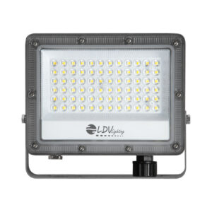 Proyector LED KADO para exterior, 50w de potencia y luminosidad de 6000lm. Equipado con 72 Chips LED LUMILEDS, y Lineal Driver con protección contra sobretensión de 4Kv. Apertura óptica simétrica de 90º y temperatura de color de 5700K. Grado de protección frente a elementos externos IP65 y grado de protección de resistencia mecánica a impactos IK09. Cuerpo fabricado en aluminio de acabado gris y lente de policarbonato transparente. Certificado CE & ROHS