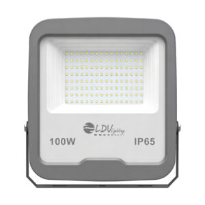 Proyector LED para exterior con tensión 12-24vdc/12-24vac, 100W de potencia e intensidad lumínica de 11000lm. Apertura de óptica simétrica de 120º y temperatura de color de 5700K. Grado de protección frente a elementos externos IP65, y grado de protección de resistencia mecánica a impactos IK08. Cuerpo de aluminio con pintura anticorrosión de acabado gris, y difusor de cristal transparente. Certificado CE & ROHS