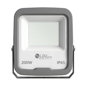 Proyector LED para exterior con tensión 12-24vdc/12-24vac, 200W de potencia e intensidad lumínica de 22000lm. Apertura de óptica simétrica de 120º y temperatura de color de 5700K. Grado de protección frente a elementos externos IP65, y grado de protección de resistencia mecánica a impactos IK08. Cuerpo de aluminio con pintura anticorrosión de acabado gris, y difusor de cristal transparente. Certificado CE & ROHS
