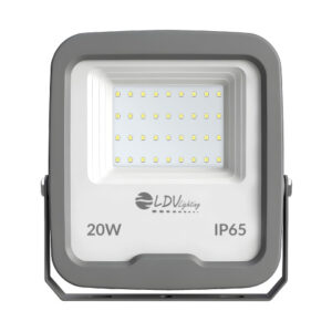 Proyector LED para exterior con tensión 12-24vdc/12-24vac, 20W de potencia e intensidad lumínica de 2200lm. Apertura de óptica simétrica de 120º y temperatura de color de 5700K. Grado de protección frente a elementos externos IP65, y grado de protección de resistencia mecánica a impactos IK08. Cuerpo de aluminio con pintura anticorrosión de acabado gris, y difusor de cristal transparente. Certificado CE & ROHS