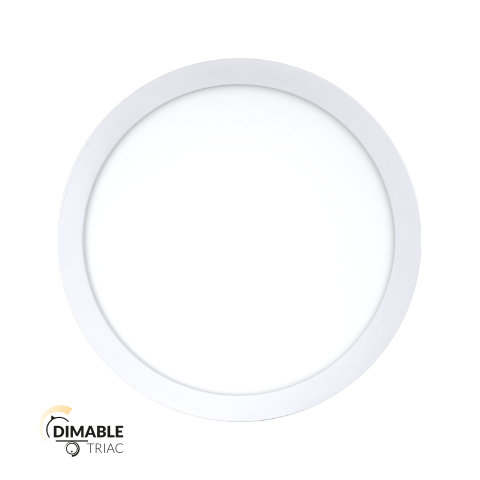 Downlight LED empotrable dimable con sistema de regulación TRIAC. 24w de potencia y luminosidad de 2304lm. Apertura óptica de 180º con distribución del flujo lumínico simétrico, y temperatura de 3000K Grado de protección frente IP44, grado de resistencia mecánica IK06 y protección de sobretensión de 2KV. Fabricado en aluminio de acabado blanco y difusor de policarbonato de acabado opal. Certificado CE & ROHS