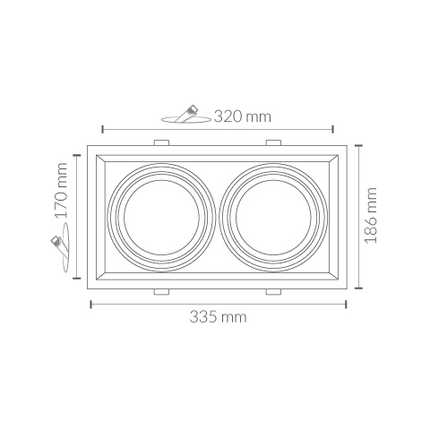 Módulo empotrable de techo Cardan. Modelo 2xAR111. Fabricado en aluminio con acabado blanco. Certificado CE & ROHS