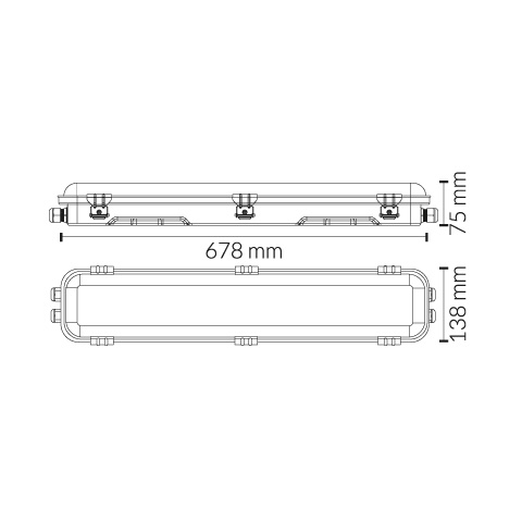 | Pantalla estanca enlazable vacía de 60cm de acero SUS316 para 2 Tubo LED T8 con casquillo G13. Grado de protección frente a elementos externos IP67 y grado de resistencia mecánica a impactos IK010. Base y clips de acero S316 de acabado blanco RAL9010 y difusor de policarbonato resistente UV opal. Pantalla certificada para uso marino y en entornos offshore, garantizando resistencia en ambientes corrosivos y condiciones extremas. Certificado CE & ROHS | |