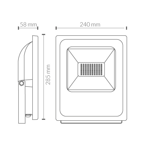 Proyector LED para exterior con tensión 12-24vdc/12-24vac, 50w de potencia e intensidad lumínica de 4750lm. Apertura de óptica simétrica de 120º y temperatura de color de 6000K. Grado de protección frente a elementos externos IP65, y grado de protección de resistencia mecánica a impactos IK08. Cuerpo de aluminio con pintura anticorrosión de acabado negro, y difusor de cristal transparente. Certificado CE & ROHS | |