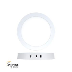 Downlight LED superficie redondo dimable con sistema de regulación TRIAC. 18w de potencia y luminosidad de 1728lm. Apertura óptica de 180º con distribución del flujo lumínico simétrico, y temperatura de 3000K Grado de protección frente IP44, grado de resistencia mecánica IK06 y protección de sobretensión de 2KV. Fabricado en aluminio de acabado blanco y difusor de policarbonato de acabado opal. Certificado CE & ROHS