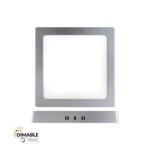 Downlight LED superficie cuadrado dimable con sistema de regulación TRIAC. 12w de potencia y luminosidad de 1200lm. Apertura óptica de 180º con distribución del flujo lumínico simétrico, y temperatura de 6000K Grado de protección frente IP44, grado de resistencia mecánica IK06 y protección de sobretensión de 2KV. Fabricado en aluminio de acabado cromo mate y difusor de policarbonato de acabado opal. Certificado CE & ROHS