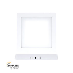 Downlight LED superficie cuadrado dimable con sistema de regulación TRIAC. 18w de potencia y luminosidad de 1764lm. Apertura óptica de 180º con distribución del flujo lumínico simétrico, y temperatura de 4500K Grado de protección frente IP44, grado de resistencia mecánica IK06 y protección de sobretensión de 2KV. Fabricado en aluminio de acabado blanco y difusor de policarbonato de acabado opal. Certificado CE & ROHS